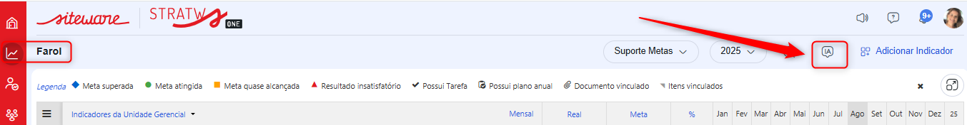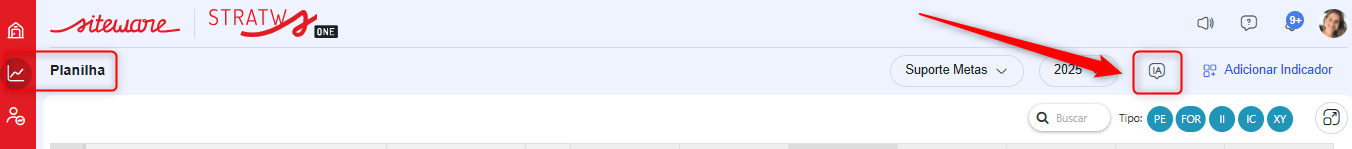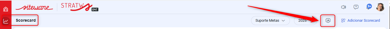 Basta entrar no módulo Performance Corporativa e clicar no ícone “IA” no canto superior direito da tela: