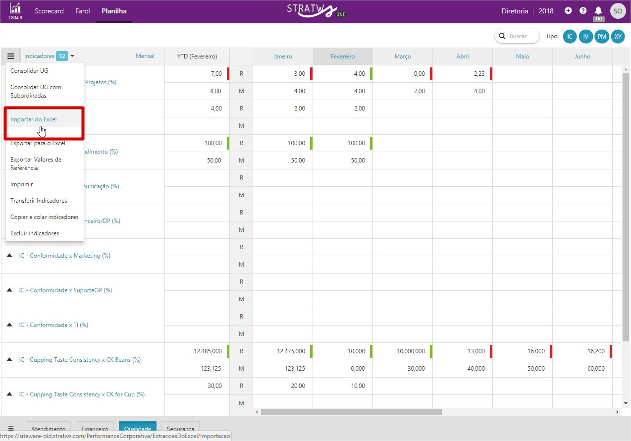 A importação é realizada no Stratws One em etapas, geralmente em duas: uma para os valores Realizados e outra para as Metas.