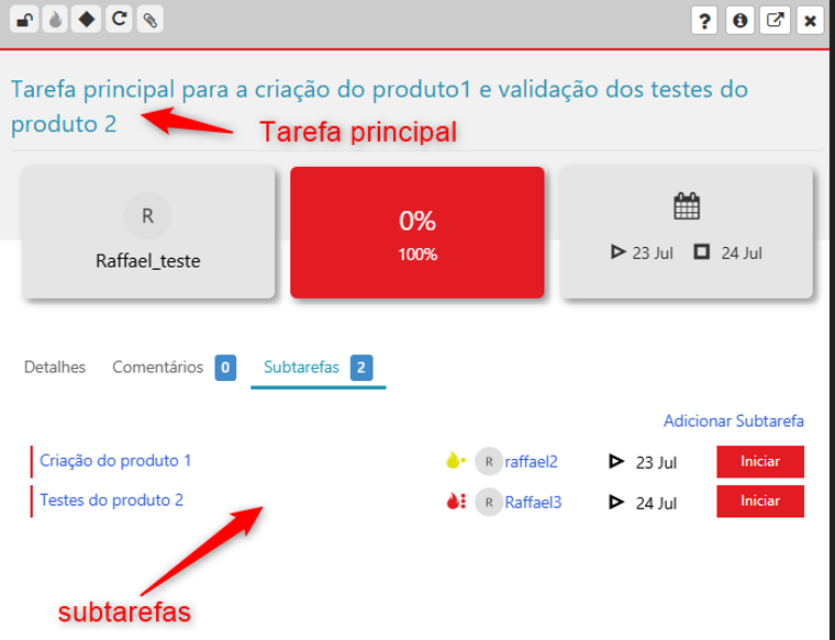 No Stratws, dá pra organizar isso de forma bem prática: quando você cria uma tarefa, por exemplo, em um plano de ação, pode adicionar subtarefas para dividir as responsabilidades, controlar prazos menores e garantir que nada fique de lado. A tarefa principal só é concluída depois que cada parte for finalizada.