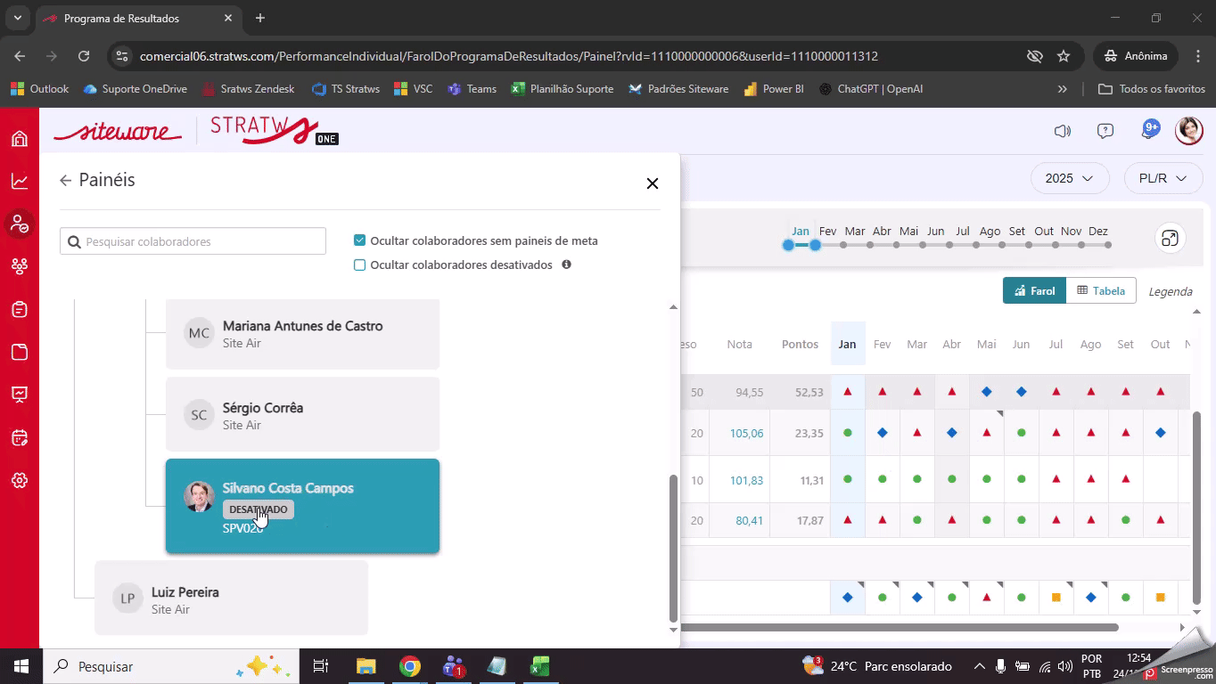 Ao marcar essa flag, você visualiza apenas os colaboradores ativos na hierarquia de painéis do Programa de Resultados, deixando a busca muito mais limpa e objetiva.