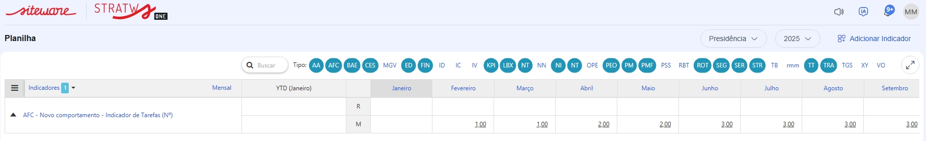 Para apoiar ainda mais a análise de resultados e trazer mais clareza na leitura dos dados, os indicadores de tarefas por quantidade ganharam um novo comportamento no Stratws.