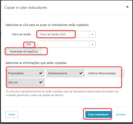 Obs.: os dados de Real e Meta não são copiados, pois cada UG possui sua apuração/dados específicos.