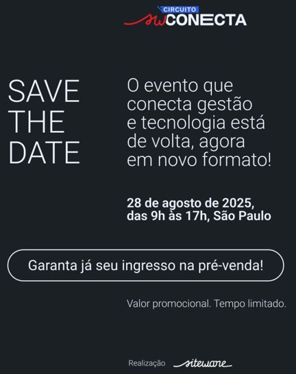 O Circuito SW Conecta 2025 já tem data marcada: será no dia 28 de agosto, das 9h às 17h, em São Paulo!